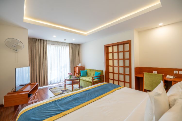 Spacious rooms with segregated sitting area, bedroom, bathroom with separate powder room & access to private balcony overlooking the scenic inner Himalayan range. Rooms equipped with smart TV & other state of the art amenities